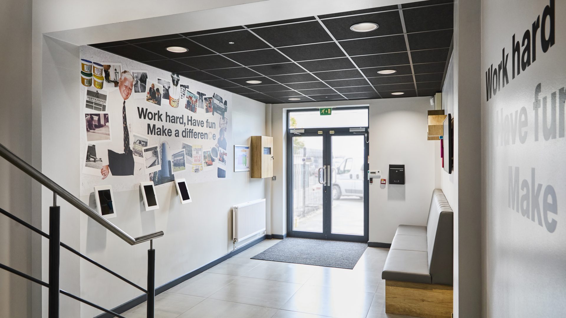 The completed entrance now provides a clean, professional and engaging welcome that sets the tone for the rest of the building. The space successfully balances practicality with visual appeal, creating an environment that reflects Instarmac’s commitment to quality, innovation and attention to detail.